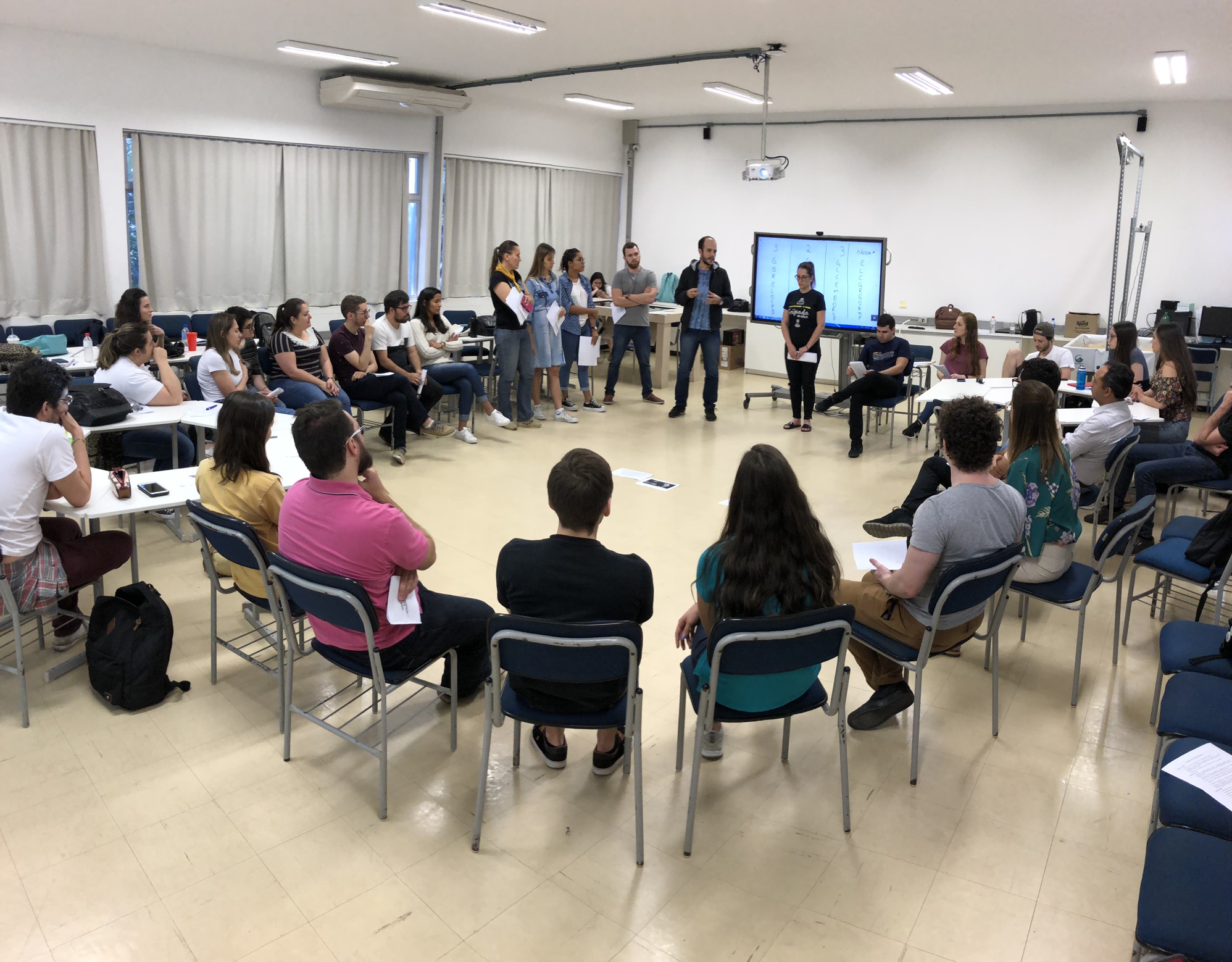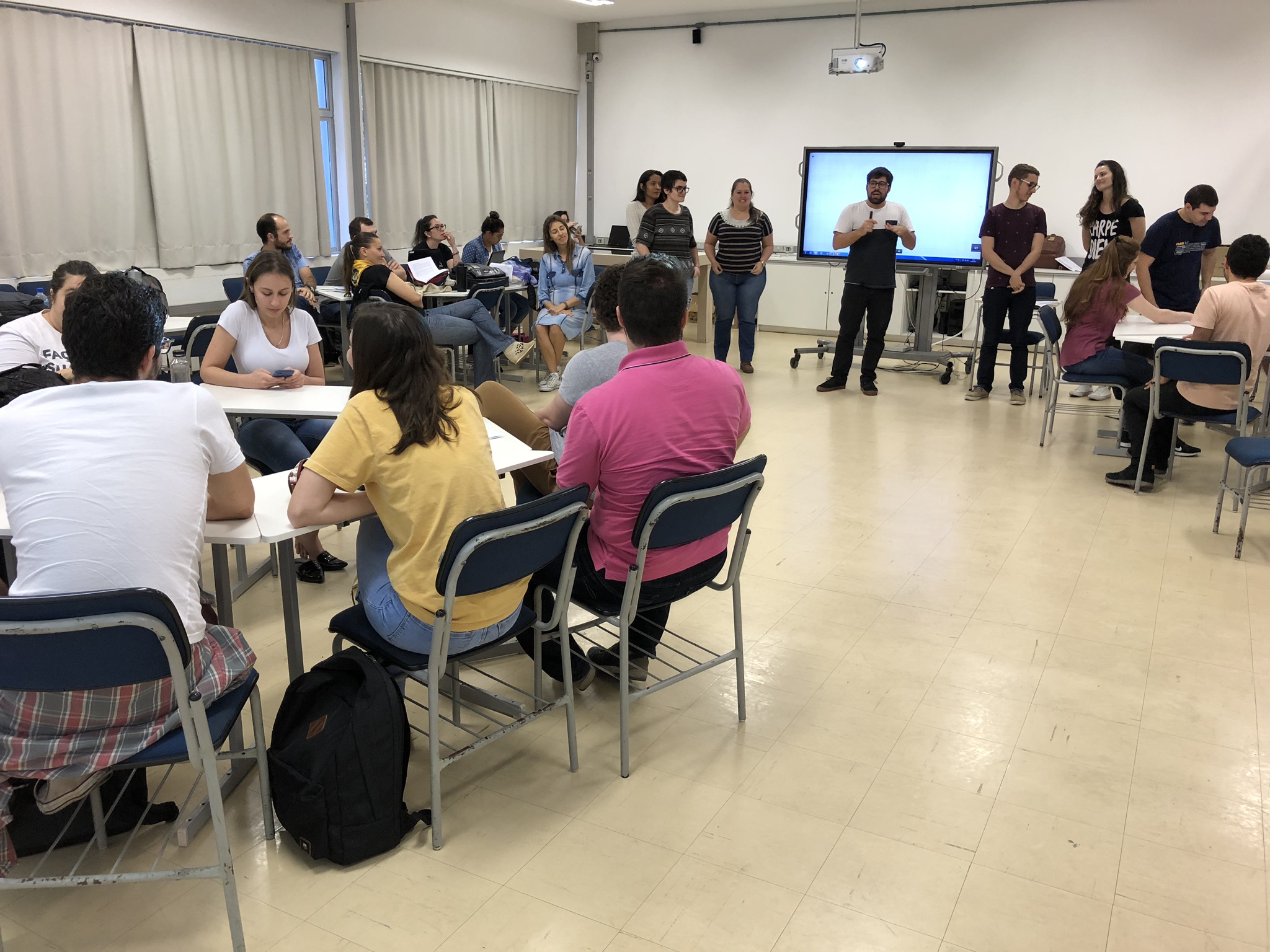 Após termos passado as últimas três aulas estudando e nos aprofundando sobre a universidade e o currículo, começamos este novo mês de aula trabalhando a respeito da docência. No primeiro momento a turma (dividida em quatro grupos), fez apresentações de algumas abordagens que podemos ter como docentes.